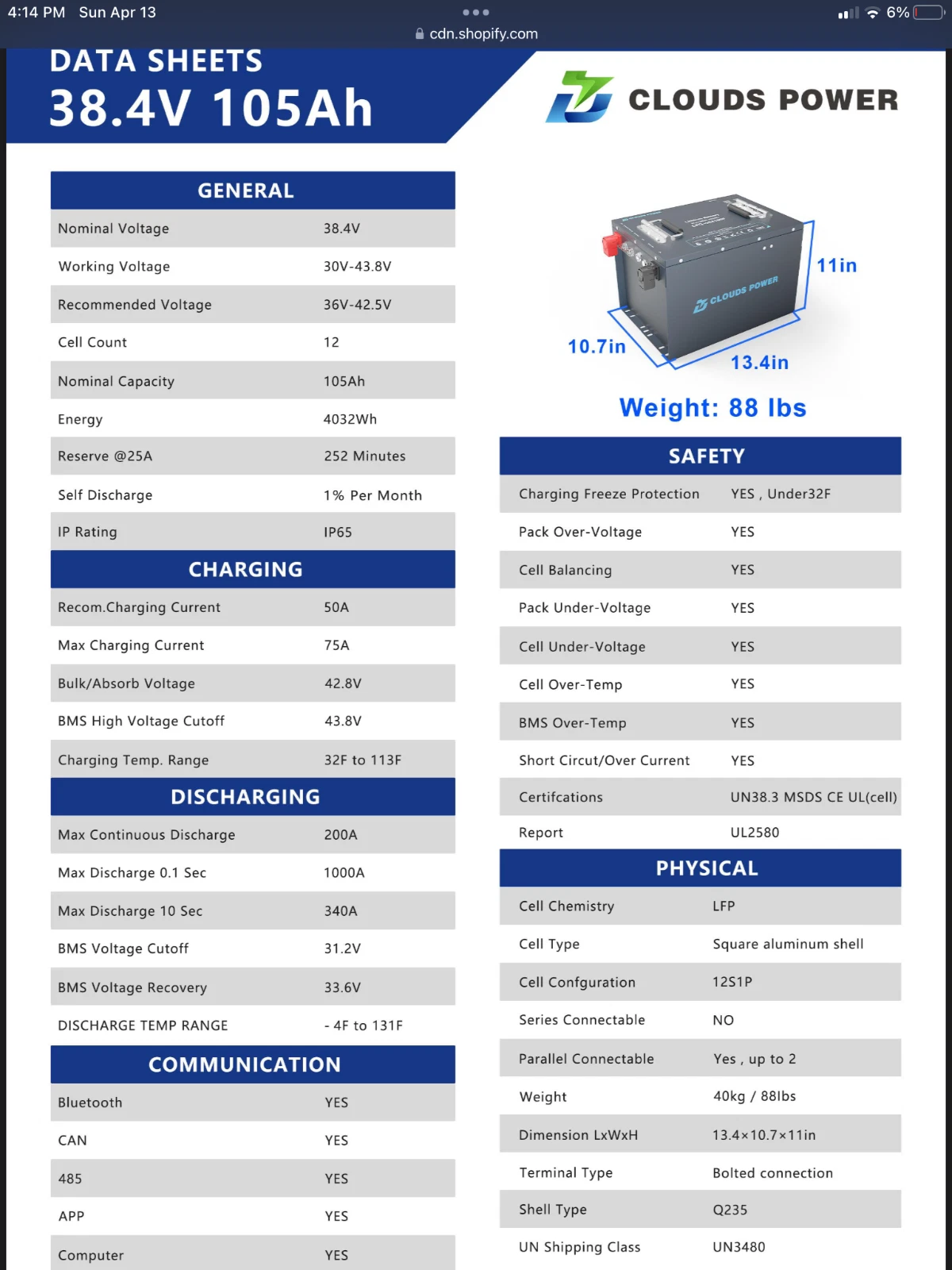 Top-Flight Performance: 48V 105Ah golf cart LiFePO4 battery is manufactured by top-of-the-line Grade A Prismatic LiFePO4 Cells and has a compact 5.37kWh energy, which is equivalent to 4pcs 12V 100Ah LiFePO4 in 4S (even 8pcs 12V 100Ah AGM batteries in 8S). It has a great 10.24kW power with low self-discharge rate, low capacity loss, more stable performance, and continuous discharge current up to 200A, which is 50% more powerful than the other same-size lithium battery.